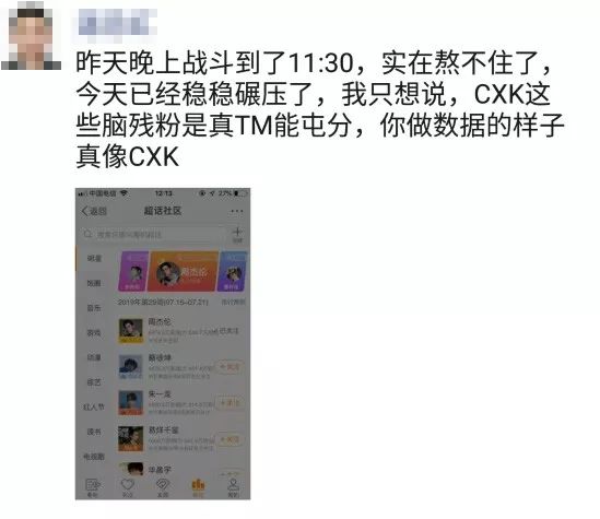 抱着一种不服,又掺杂着几分娱乐精神的拱火,一群此前从未接触过明星打榜的“中老年人”纷纷拉下老脸,跟00后们学习微博超话社区在哪、如何领分捐分做任务,如何通过一系列复杂至极的操作提升明星的超话排名。