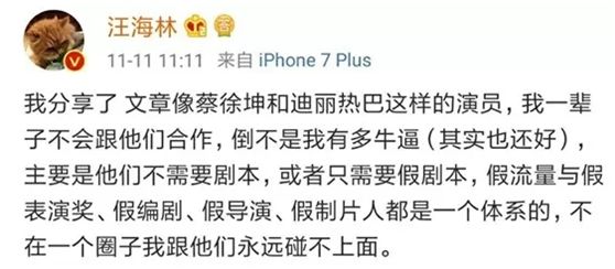 著名编剧汪海林痛批道:他们不需要剧本,或者只需要假剧本、假流量与假表演奖,假编剧,假导演,假制片人都是一个体系的。