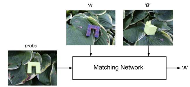 五十年后,我们面临着同样的问题,即可以进行一次性学习的深度神经网络。考虑我们在DeepMind的同事开发的神经网络匹配网络。该模型使用最近在注意力和记忆力方面的进步来实现使用类中唯一示例的ImageNet图像的最先进的性能。但是,我们并不知道网络对这些图像进行分类的假设。