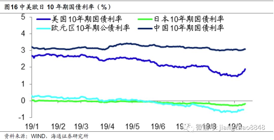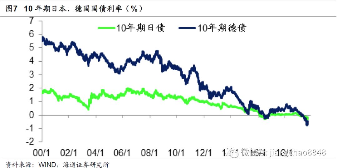 由于欧日央行的负利率政策不断加码,使得10年期日债和德债利率分别降至-0.16%和-0.45%,均处于历史最低点附近。