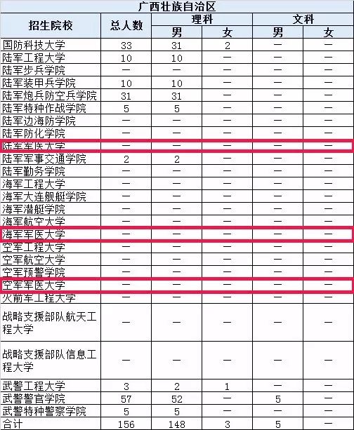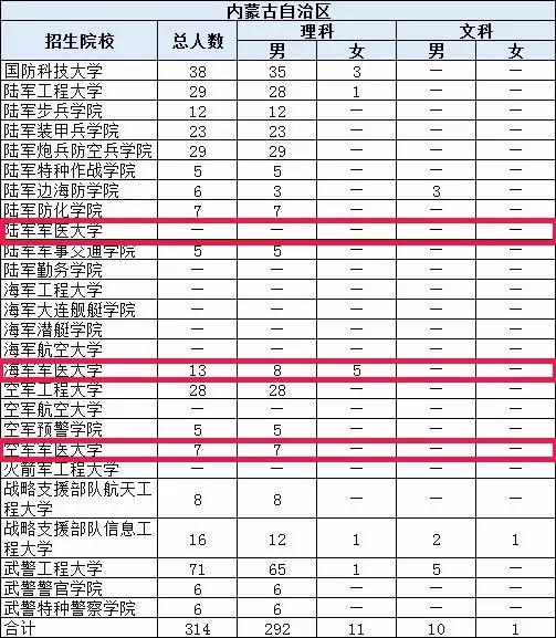 本文中数据仅供参考,考生报考请以军地教育部门发布的正式文件为准。