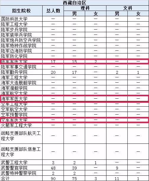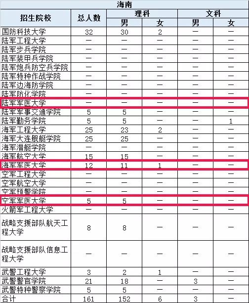 近日,经相关主管部门授权,“黄埔一号v军校资讯”联合多家网络平台发布了“2018年解放军和武警部队院校招收普通高中毕业生计划”,据了解,此次发布的招生计划以省市区为单位单列,不包含军校招收士兵学员的数据,及陆军工程大学为全国人防系统定向招收的150名学员计划,在首轮军改中,被改名为海军军医大学、陆军军医大学、空军军医大学的招生人数也在此发布计划中。