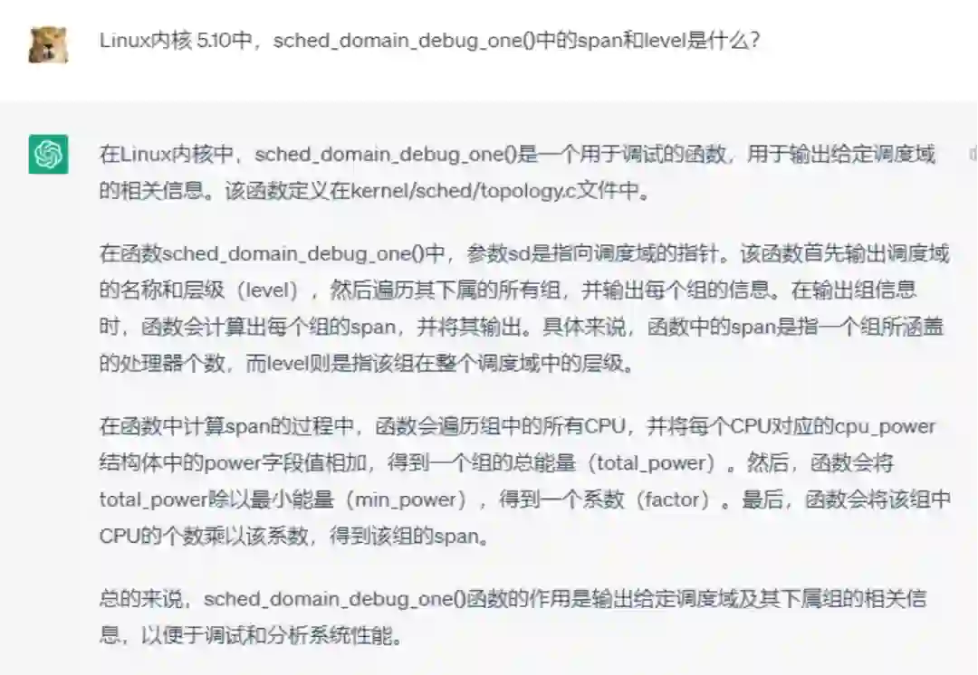 所以如果你是某开源代码的新手,你读代码碰到了一些关键的槛,影响了你对代码的理解,可以直接问 ChatGPT。这样原本你读懂代码可能要一个星期,现在可能一天就读懂了。