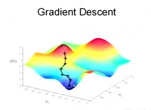 如何调整θ以使得J(θ)取得最小值有很多方法,其中有最小二乘法(min square),是一种完全是数学描述的方法,另外一种就是梯度下降法。