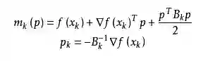 这里Bk是一个对称正定矩阵,于是我们取这个二次模型的最优解作为搜索方向,并且得到新的迭代点: