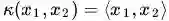 这实际上就是原始空间中的内积。这个核存在的主要目的是使得“映射后空间中的问题”和“映射前空间中的问题”两者在形式上统一起来了(意思是说,咱们有的时候,写代码,或写公式的时候,只要写个模板或通用表达式,然后再代入不同的核,便可以了,于此,便在形式上统一了起来,不用再分别写一个线性的,和一个非线性的)。