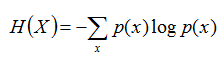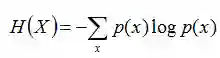 熵:如果一个随机变量X的可能取值为X = {x1, x2,…, xk},其概率分布为P(X = xi) = pi(i = 1,2, ..., n),则随机变量X的熵定义为: