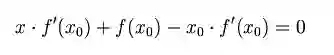 然后我们计算穿过点(x0,f(x0))并且斜率为f '(x0)的直线和x轴的交点的x坐标,也就是求如下方程的解: