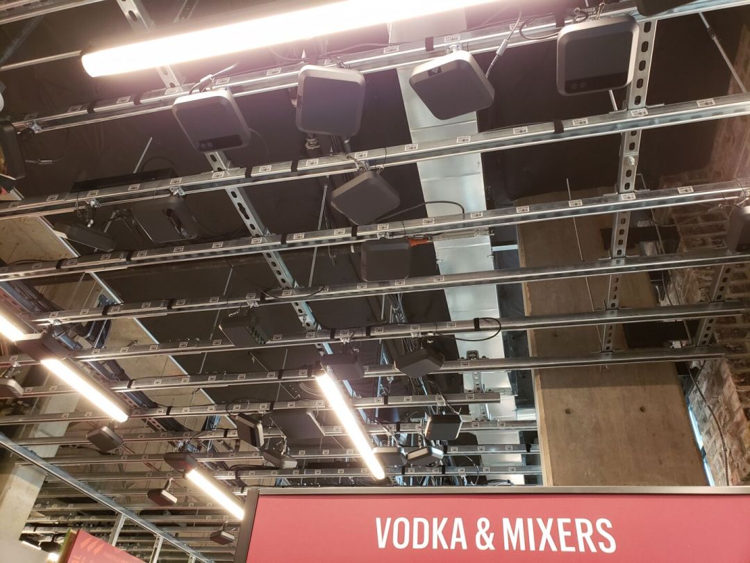 为了减少误差,亚马逊无人店的货架和天花板上也装置了多个麦克风,可以根据音频回传的时差辅助定位顾客。