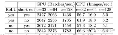从表中第一行数据看出,当移除了ReLU和short-cut,大约提升了20%的速度。