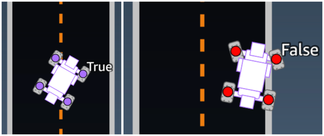 对于 Amazon DeepRacer 来说,开发者可以设置一个超级简单的奖励函数,它只有两个参数:all_wheels_on_track 表示四个轮子是否全在赛道内, progress 代表当前完成进度。