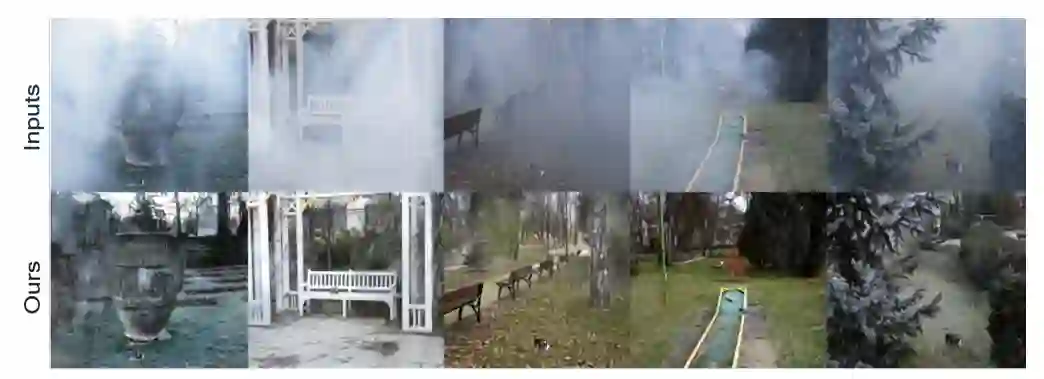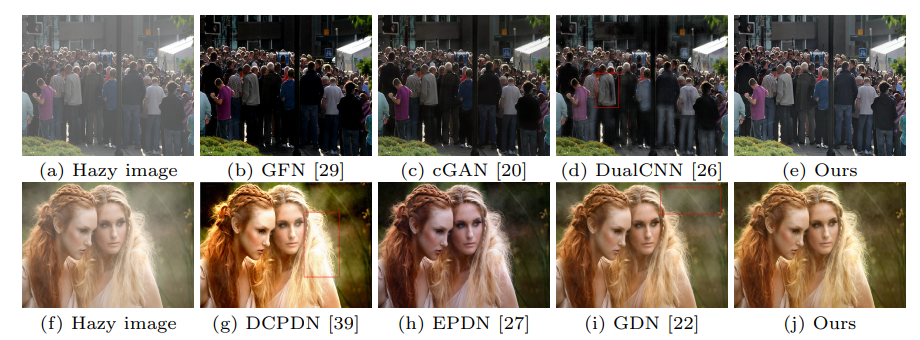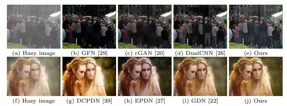 所提出方法除了可以处理具有均匀雾度的图像,还可以很好地去除图像中密集的非均匀雾度。