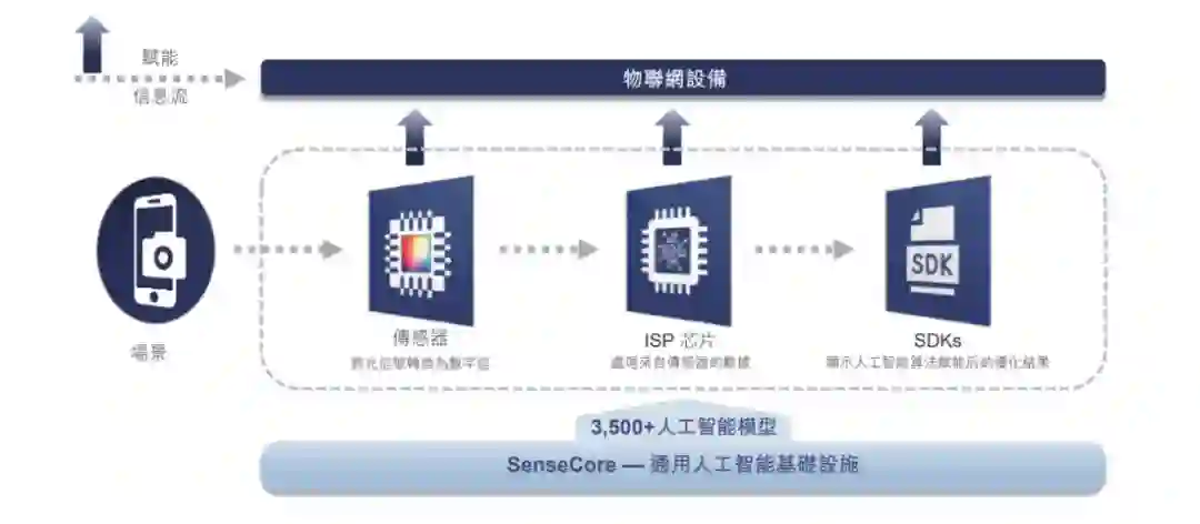商汤累计赋能 200 多款手机、AR 和 VR 设备、智慧大屏及消费级无人机。为了将潜在个人信息泄露风险降至最低,商汤仅以元数据形式对提取的关键信息传输有限数据,使 AI 传感器隐去用户个人信息,从而增强数据安全性。