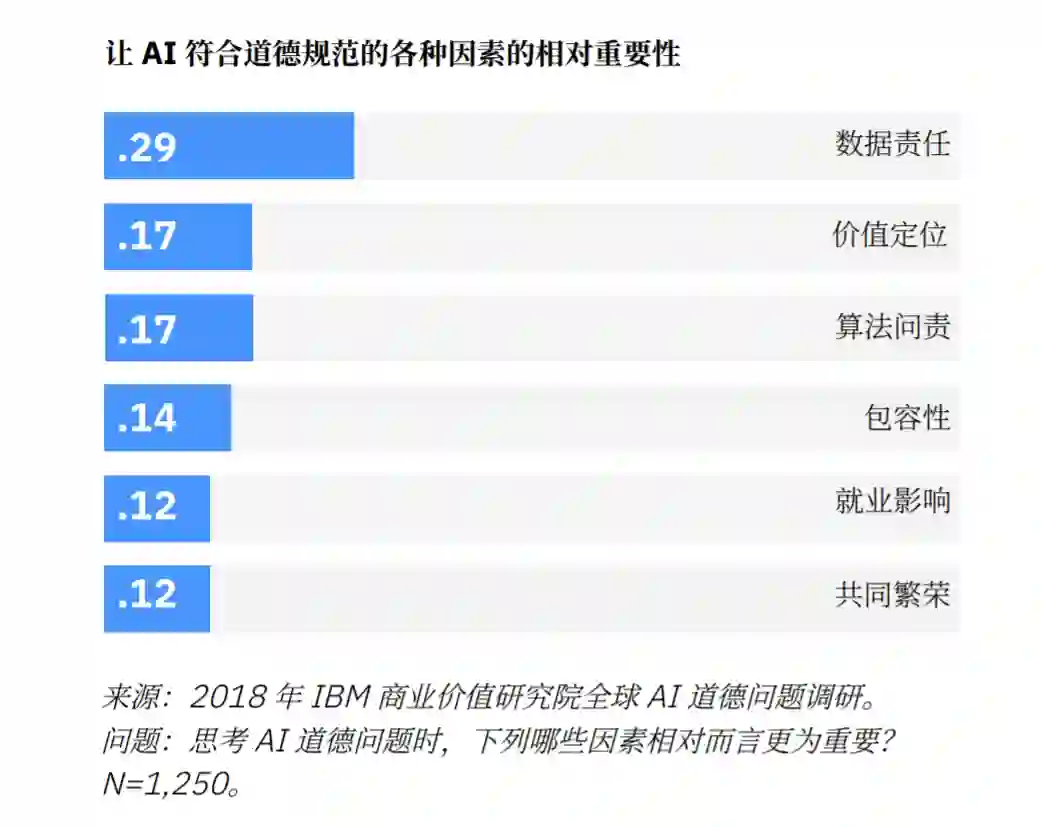 而其中,首当其冲的是数据与隐私保护。IBM 商业价值研究院曾在 2018 年与牛津经济研究院合作调查,发现,近 2/3 高管将「AI 道德」视为重要业务主题。