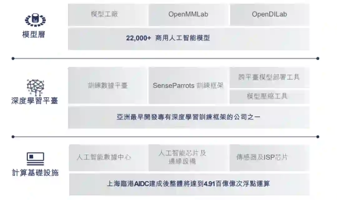 商汤通过软件平台快速部署及商业化人工智能模型的流程。
