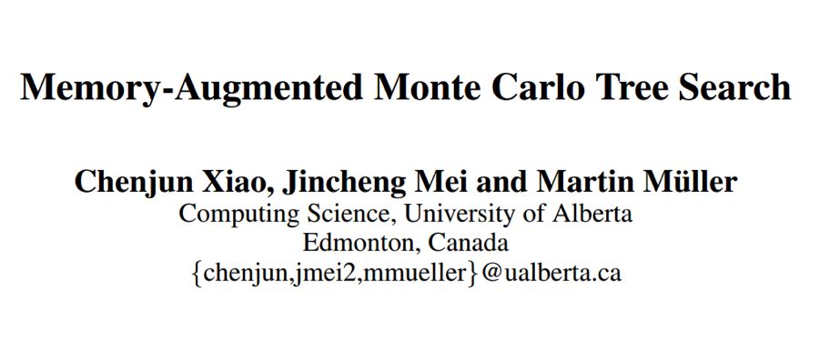 AAAI 2018 大会已于 2 月 2 日在美国新奥尔良开幕。在此之前,大会获奖论文的结果已经放出,阿尔伯塔大学提交的论文《Memory-Augmented Monte Carlo Tree Search》获得了 AAAI 2018 大会的杰出论文奖。该论文作者分别为博士生 Chenjun Xiao、梅劲骋与教授 Martin Müller。