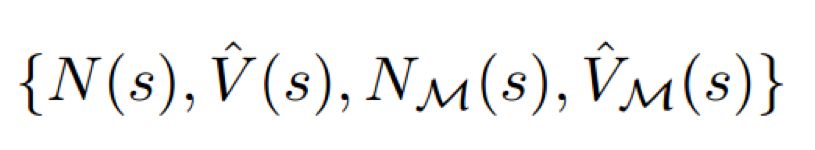 我们现在介绍记忆增强 MCTS(M-MCTS)算法。图(1)提供了简要的图示。M-MCTS 和常规的 MCTS 的主要区别在于,M-MCTS 搜索树的每一个节点都会存储统计的一个扩展集合: