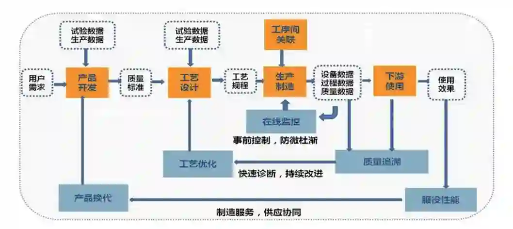 人工智能与工业的深度融合将逐步从通用性技术领域向技术纵深程度高的专业技术场景转变,实现从上游设计、原料投递,到中游制造、人机协作,再到下游服务、监测运维,最终再指导工业设计和技术升级的应用闭环。