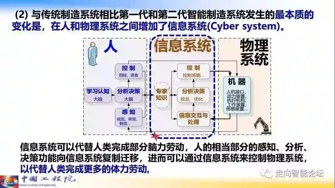 现在所谓新一代的智能制造,本质的特征是有了学习能力。把学习能力也让渡了一部分给了信息系统,代替了大量脑力,也包括部分创造性的脑力。