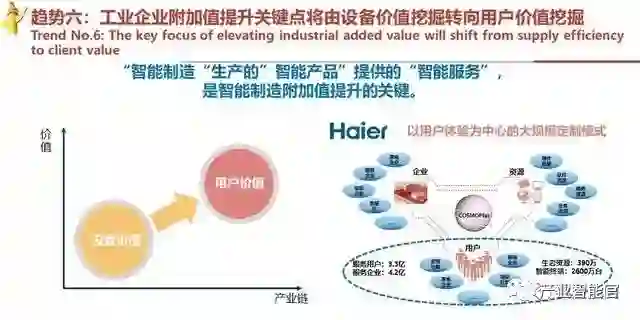 工业发展进程正在从企业产品牵引用户需求转变为用户需求引领企业生产,智能制造对于工业领域附加值的提升也应该逐步从生产制造环节的降本增效,转向提供高附加值衍生服务,即“智能制造“生产的”智能产品”提供的“智能服务”,将成为工业企业附加值提升的关键。