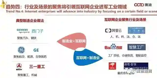 互联网企业进军工业领域具有天然的技术和平台优势,我国“互联网+智能制造”已取得初步成效,包括阿里云产业大脑、百度智慧工厂以及京东智慧供应链等。未来聚焦智能制造具体行业及场景,将成为互联网企业发展智能制造的重要切入点。