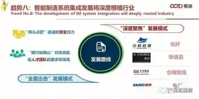 智能制造系统解决方案作为综合性集成服务,既要面对“两头占款”带来的资金压力,还要满足团队对于专业人才的高需求,多领域“全面出击”的发展路线将给企业来带沉重的包袱。未来,深度聚焦细分行业的系统集成商有望扛起产业发展大旗。
