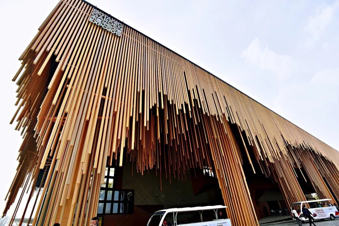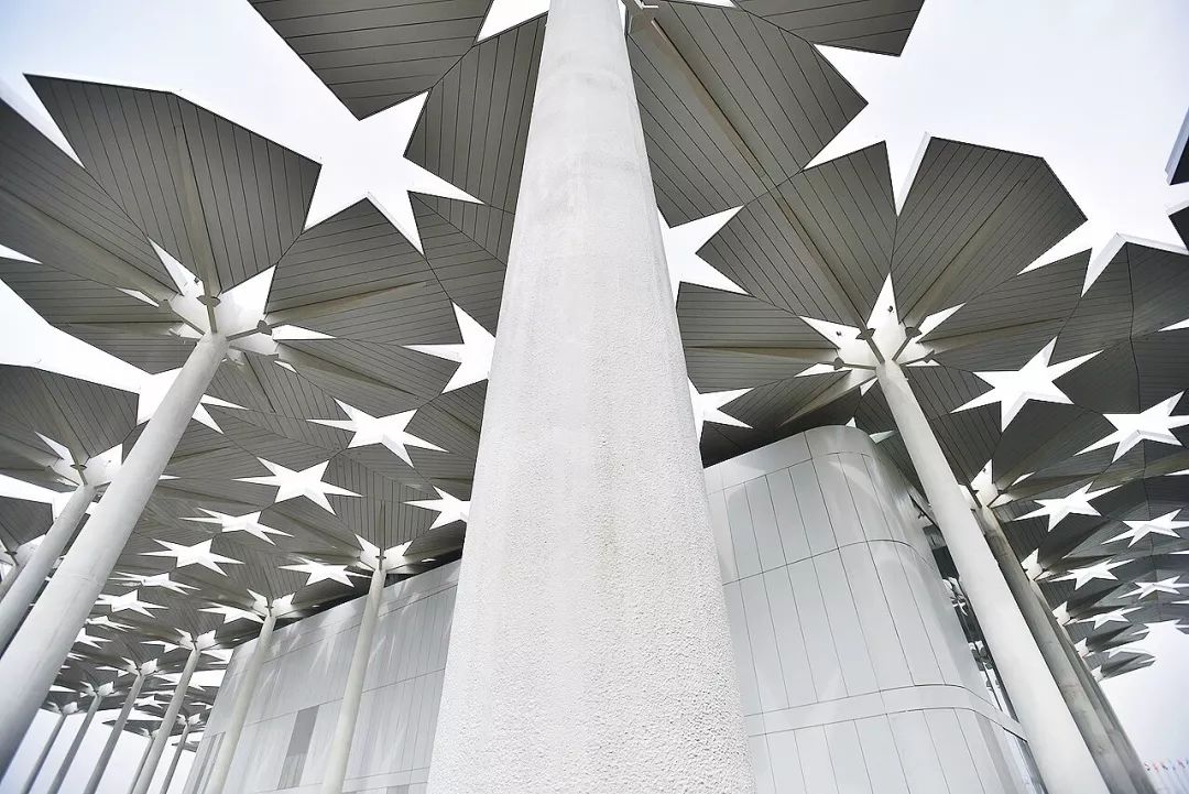 距离中国馆大约500米处就是国际馆啦。从远处看,国际馆像一朵朵白色花朵拼接而成,融合绽放。展馆内有不同国家的特色展厅。☟