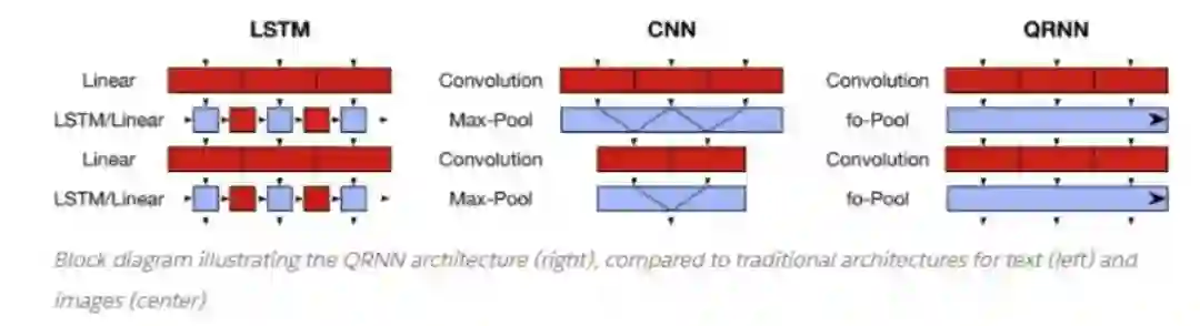 论文Quasi-Recurrent Neural NetworksQuasi 提出QRNN,其结合了RNN和CNN的特性。在使用卷积结构替代循环结构上,QRNN 没有纯 CNN 模型(e.g. WaveNet)那么激进,依然保留了一些循环结构。
