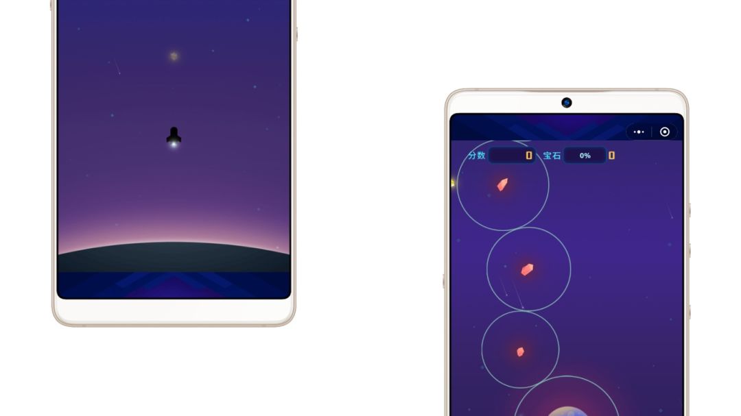 这是一款看似简单。实则有着较大难度系数的小游戏。星途 WeGoing 的游戏界面以星空为背景,构成元素较为简单,主体为一个小火箭和多个被圆圈环绕着的大小行星。