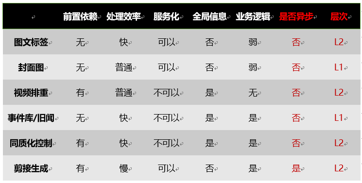 是否能异步取决于,服务处理的时间效率,如果处理时间能保证实时返回那异步的需求不大,有的服务在特定业务场景下是严格依赖的,比如封面图,一定是需要处理完成才能继续。有的服务是可以在内容上线之后在执行并且更新,例如同质化控制,可以先曝光再下架。