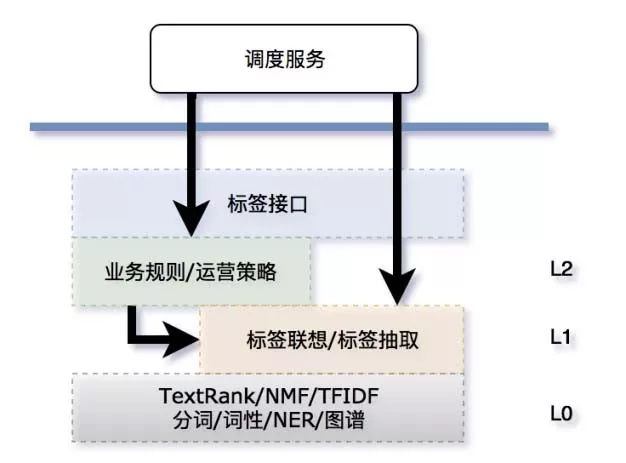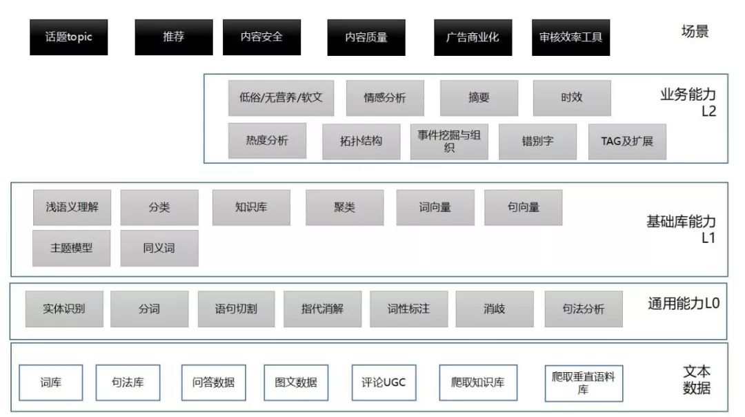 我们把任何一个服务分层L0-L2三层,0层就是原子化的,不适合业务场景的无状态基础能力,如果在 NLP 的应用上,类似下图: