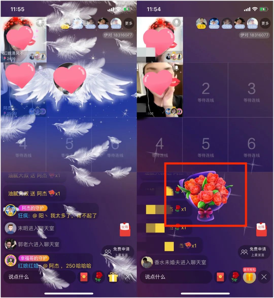 “天长地久”是伊对平台上女嘉宾青睐的虚拟礼物之一,价值9999支玫瑰花,该特效触发后,可以“在月亮上飞”。争取保麦的女嘉宾常常说,“带我飞一下嘛”,就是对该特效的疯狂暗示。