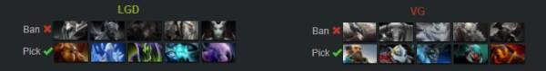 这个工具一个最大的作用就是可以通过阵容来预测每一方的胜率,我们这里不妨使用之前的比赛来测试一下。我们选取了TI7预选赛中LGD对阵VG的一场比赛,其对战阵容是这样的: