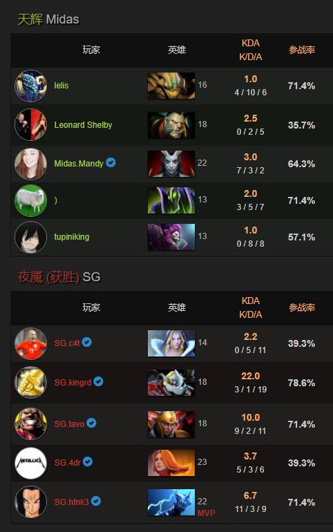 我的天夜魇胜率这么高,那这天辉方还打个毛——事实上比赛结果也确实是这样,天辉被从头虐到尾,输的找不到北。