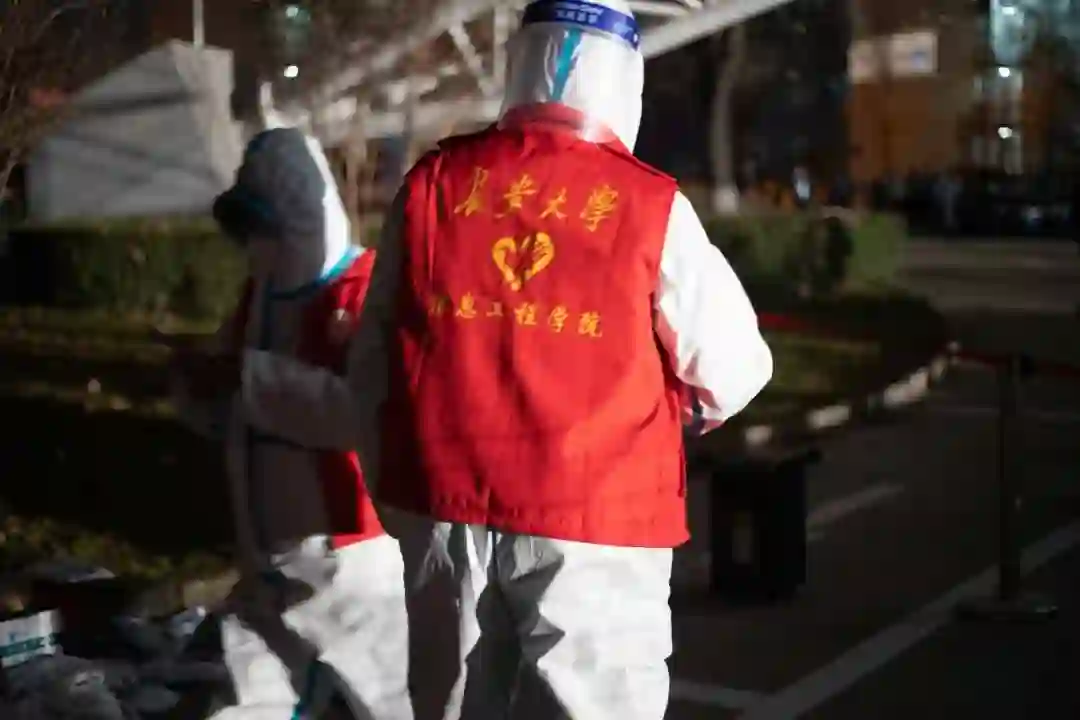 冬夜里,学生、教职工志愿者们挺身而出,毫不犹豫穿上防护服,走上服务一线,参与信息录入和秩序维护工作,积极为师生、医护人员提供便利。