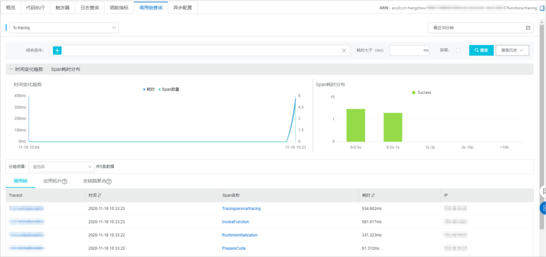 可观测性是应用上线诊断平台的必备属性,要让用户观察到 RT 变化、资源的使用率、系统应用的全链路调用,从而快速诊断出系统应用的瓶颈问题。阿里云函数计算率先与日志服务、云监控、tracing 平台以及函数工作流编排做了完美的融合,用户只需要配置一次,就可以完完整整的享受到以上这些功能,大大降低了用户的学习成本,实现了对应用程序的快速诊断。