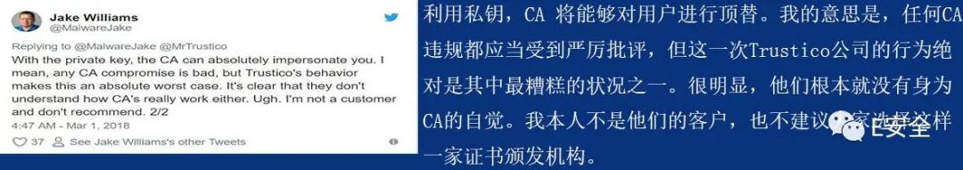 Trustico 公司总经理 Zane Lucas 强调称,“我们认为赛门铁克证书会对我们的帐户产生损害,通过赛门铁克帐户下达的订单可能面临风险以及管理不善问题。我们一直在向赛门铁克方面提出质询,但后者在一年周期内始终示作出回应。赛门铁克公司根本无视我们的担忧,这将直接给未来的安全事故埋下祸根。”