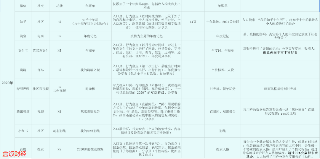 当然根据平台属性不同,可以增加不同的内容,如音乐类一定会总结年度歌单、年度最爱歌手等。