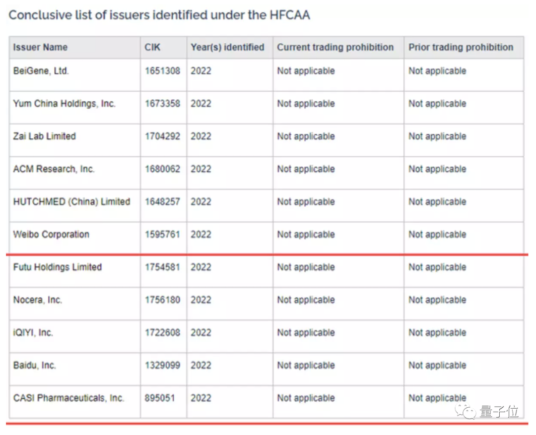 由于申辩日期截止,美国证券交易委员会将富途控股、Nocera、爱奇艺、百度和凯信远达医药这五家中概股公司,从预摘牌名单划入确定摘牌名单。