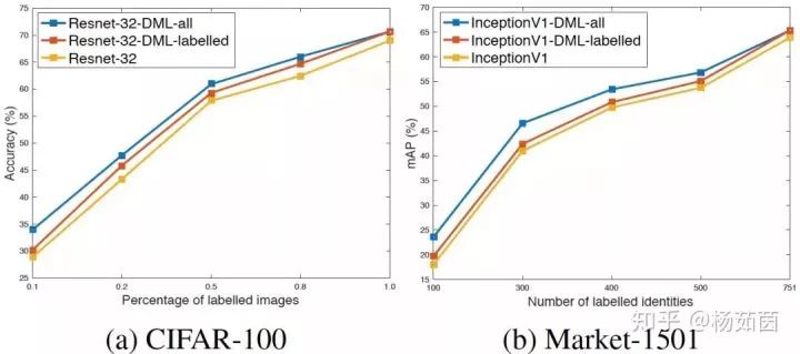 我们提出的互学习算法也很容易扩展到多网络学习和半监督学习场景中。当有K个网络时,深度互学习学习每个网络时将其余K-1个网络分别作为教师来提供学习经验。