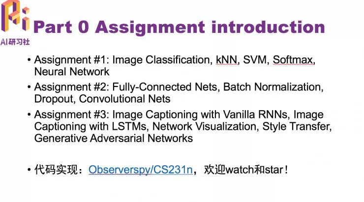 本文根据 AI 研习社公开课上的直播视频内容整理而成,主要介绍 Assignment 1 的完成思路与重点部分代码实现。如果你还没开始听 CS231n,可直接点击课程链接(http://www.mooc.ai/open/course/364 )观看回放视频。
