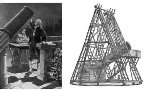 右图:赫歇尔兄妹亲手制造的大反射望远镜