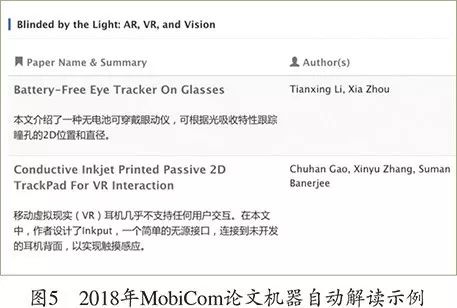 Acemap团队分析了MobiCom 2018收录的42篇论文,包括六大功能模块:(1)对2018年、近三年、近五年学者和机构分别以第一作者身份以及合作者身份在该会议中发表论文数量进行了统计;(2)对论文发表机构所属国家进行了统计;(3)给出每篇论文的研究问题和相关算法的一句话机器自动解读;(4)对所有曾在MobiCom上发表过论文的作者以及仅在2018年发表过论文的作者的合作关系进行可视化展示,挖掘作者合作关系画像;(5)将论文按照所属的session(比如Blinded by the Light: AR, VR, and Vision和Lock it Down! Security, Countermeasures, and Authentication等共计10个session)进行可视化展示,挖掘session之间的相关性画像;(6)每篇论文分5个维度进行推荐,包括最新、最相关、最经典、同会议以及导读类论文。