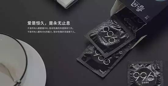 下面这个专为中年男性设计的安全套,则起名“996”。特别中带点直白,直白中又带了点暗示。有了这款避孕套,西北旺的互联网从业人士们,以后就可以上班996,下班也996了。