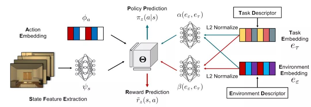 本文提出了一种新颖的部件神经网络,它描述了如何从环境和任务来组成强化学习策略的元规则。值得注意的是,这里的主要挑战之一是环境和任务的特征描述必须与元规则一起学习。为此,研究者又进一步提出了新的训练方法来解锁这两种学习任务,使得最终的特征描述不仅成为环境和任务的独特签名,更成为组建策略的有效模块。