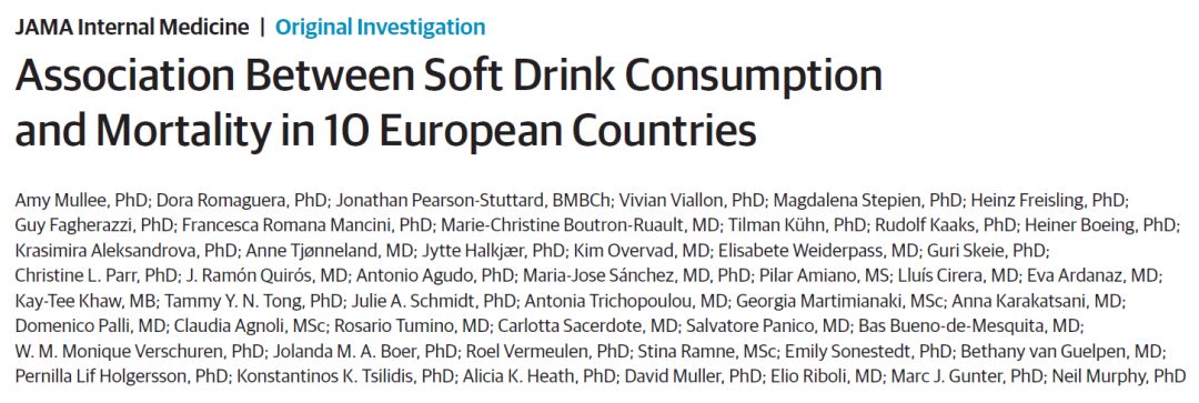 近日,伦敦帝国理工学院的研究人员在 JAMA Internal Medicine 杂志发表了题为:Association Between Soft Drink Consumption and Mortality in 10 European Countries 的研究论文。