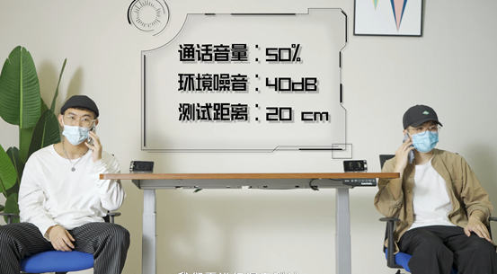 我们把两台手机的音量都开到 100%,然后一位同事坐在 1 米外的位置,由她来复述话筒里说的生词,看正确率有多高。