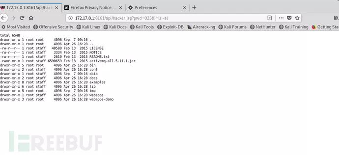 所以,ActiveMQ在5.12.x~5.13.x版本中,已经默认关闭了fileserver这个应用(你可以在conf/jetty.xml中开启之);在5.14.0版本以后,彻底删除了fileserver应用。在测试过程中,可以关注ActiveMQ的版本,避免走弯路。