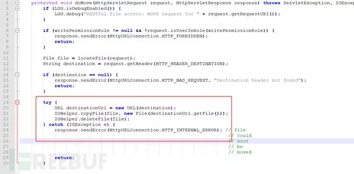 下载源码进行分析,可以看到ActiveMQ 中的 FileServer 服务允许用户通过 HTTP PUT 方法上传文件到指定目录,可以看到第二处的if相当于没有对用户身份进行校验。