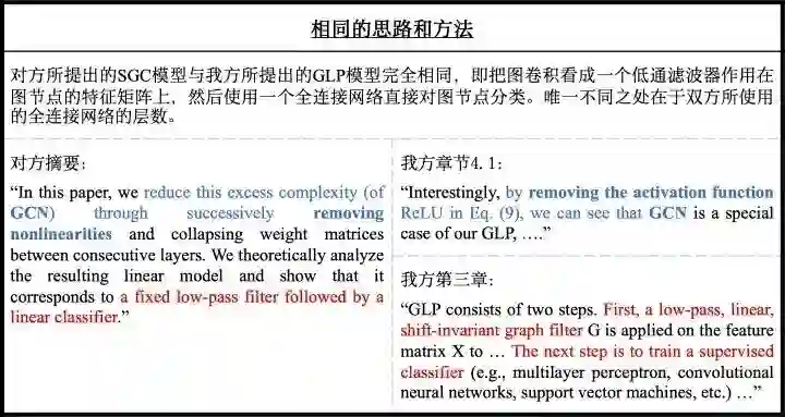 2.由于两篇论文从核心方法到技术细节都过于相似,对方的解释未能让我方信服。GLP是我们AAAI-2018论文[8]的后续工作,比对方论文早近一年时间,最早曾投稿到ICML-2018。如果我方论文未被CVPR-2019接收,那在SGC被ICML-2019接收后,将几无可能发表。